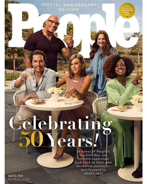 PEOPLE Magazine celebrated its 50th anniversary with a special issue this week and, seriously, no snark, good for them. In the current media landscape, making it to 50 and still in print is an achievement. Although…and here’s where the snark comes in… these covers…