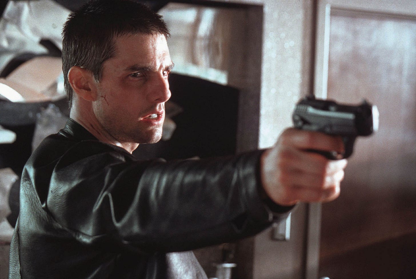 Before we get to Oprah’s couch, though, let’s consider the circumstances leading up to Tom’s appearance on the show. Professionally, at that time, Tom Cruise was undeniably the biggest movie star on the planet. He was 42 years old, and in addition to the franchise films we’re all familiar with, he was coming off a seemingly interminable string of hit movies. Minority Report, The Last Samurai, and Collateral, all of them strong box office performers, and in the case of Minority Report and Collateral, both of these films hold up. Minority Report is excellent, and I’m not sure Tom gets enough credit for how good he is as the villain in Collateral. Or, rather, you could argue that when it came out in August 2004, he did get credit…but that credit ended up being overshadowed.