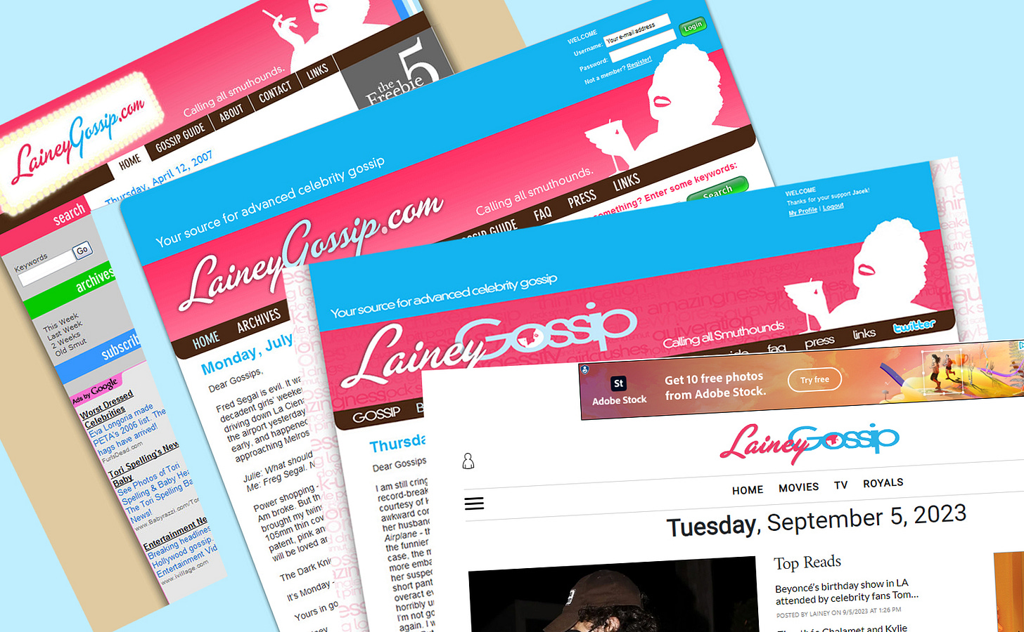 My name is Lainey and most of you have probably found your way here today from LaineyGossip.com, the celebrity gossip website I founded in 2003. Before the blog, though, LaineyGossip began as a newsletter. It was 2002, I’d just quit my job, and I started sending an email to my two officemates at that job as a way to stay in touch. The emails were a way for me to keep them up-to-date on what was going on in Hollywood, because for the years that we worked together, I was their gateway to gossip and I took that responsibility very seriously.